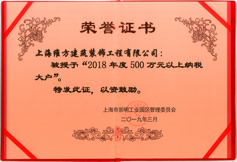 公司獲2018年度崇明工業園區納稅大戶榮譽稱號